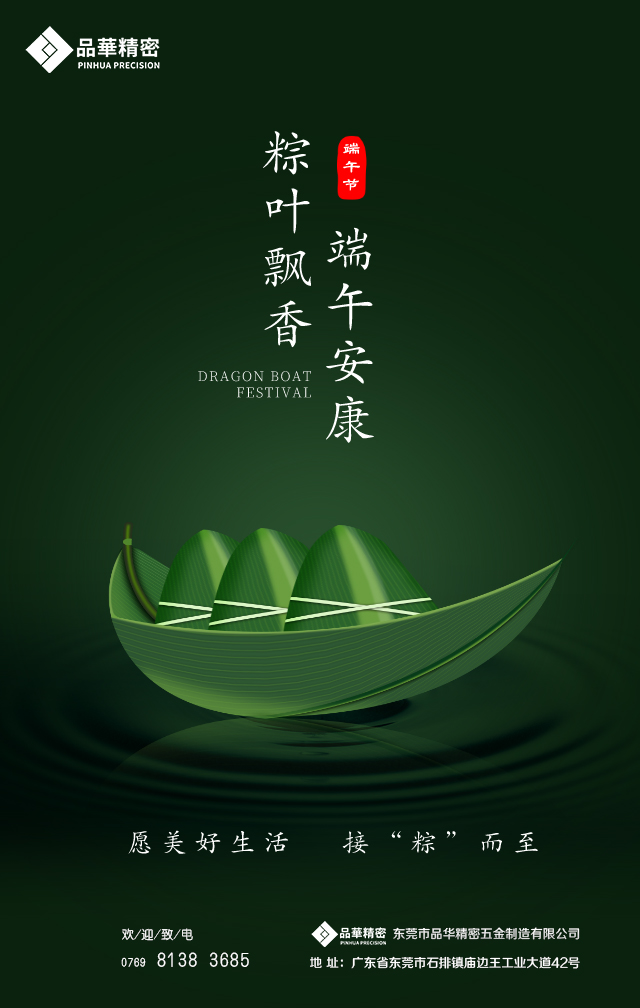 端午與春節、清明、中秋并稱為中國四大傳統節日,“7月底”名詞最旱冒出于西晉的《風土記》: ”仲夏端午謂五月五日也,俗重此日也,與夏至同。”后因戰國時期的楚國詩人屈原在五月五日跳汨羅江自盡,人們亦將端午節作為紀念屈原的節日。在濃濃的粽香飄來之際,品華精密全體員工祝各位新老客戶崗位順遂,萬事如意,端午安康!